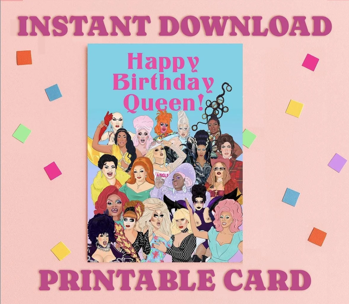 Drag Race Birthday Card: Printable LGBTQ+ Greeting (Digital Download)