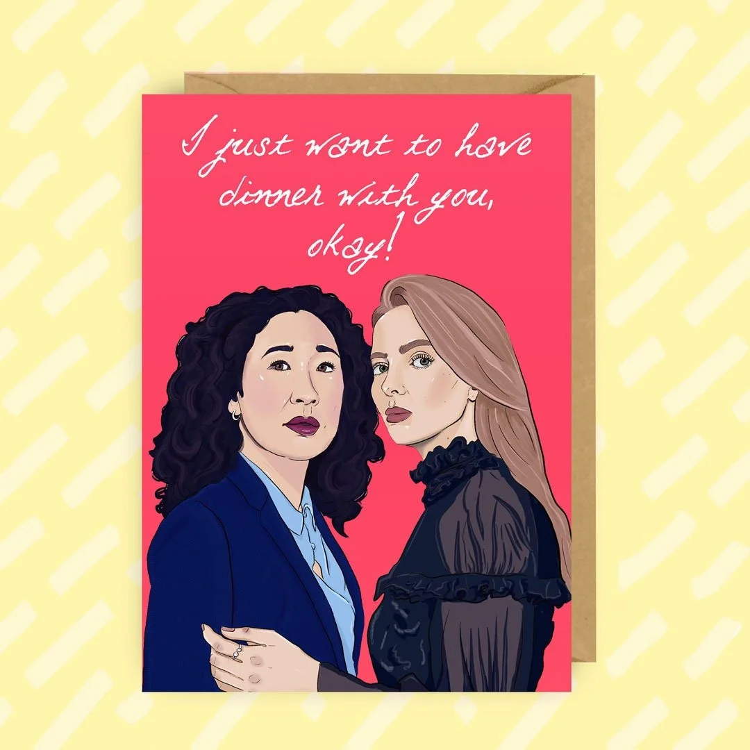 The Killing Eve card for Valentine's Day is created with love at home and professionally printed.