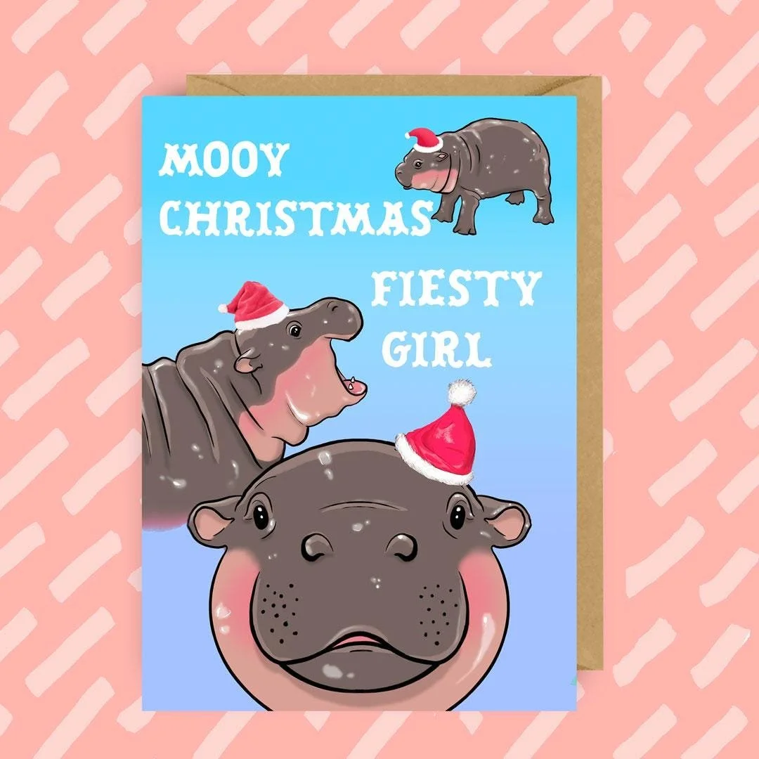 Funny Moo Deng the Hippo Christmas Card – Cute, Humorous Hippo Design for Animal Lovers - Meme