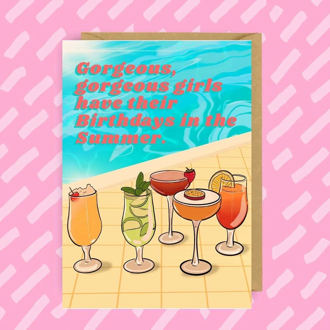 Gorgeous, Gorgeous Girls Birthday card for woman | Female | Drinks | Hun | Cocktails | Brunch | Funny | Huns | Girlfriends | Holiday