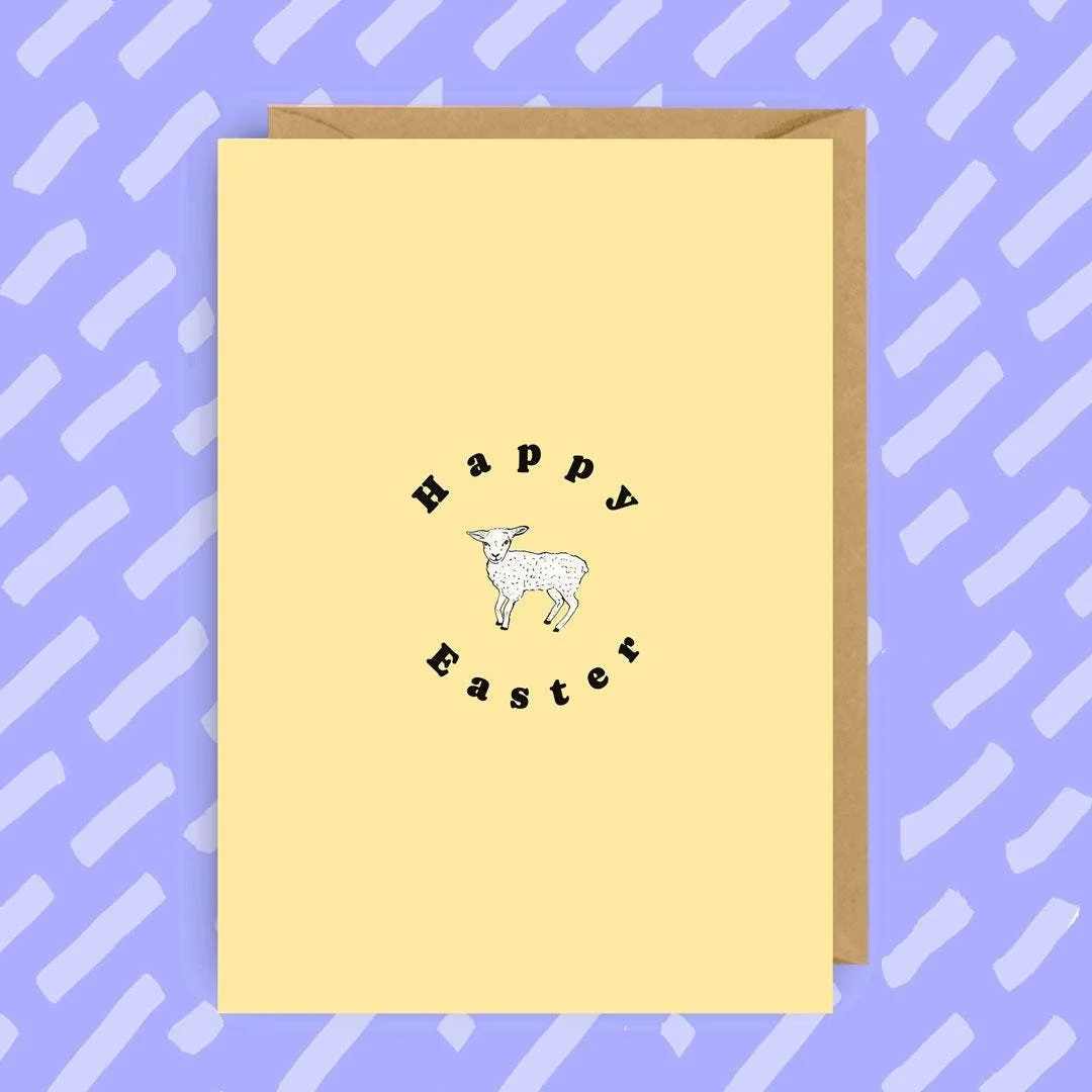 Happy Easter Card: Lamb Illustration, Spring Greetings