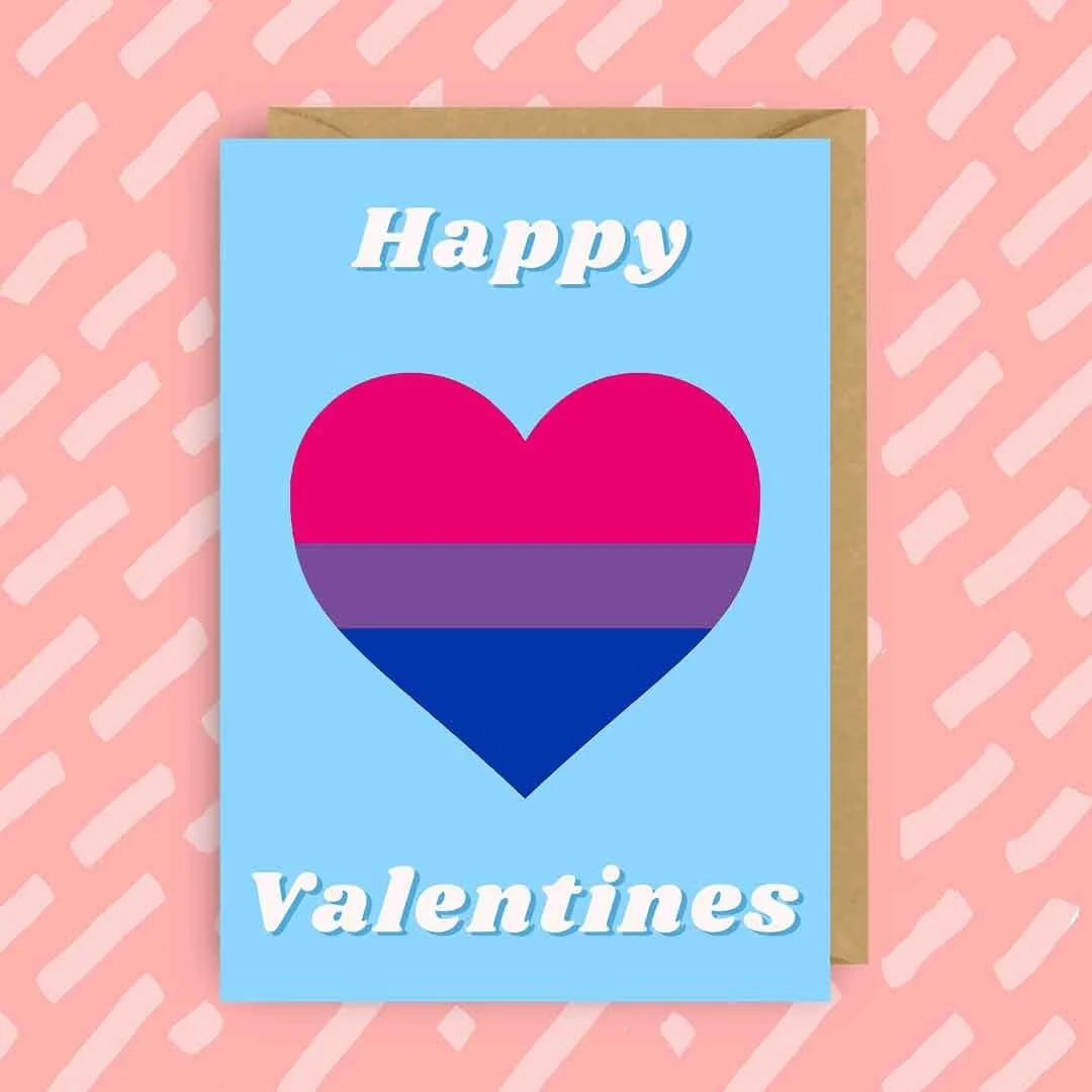 Happy Valentines Bisexual Pride Flag | LGBT | Queer | Gay Cards