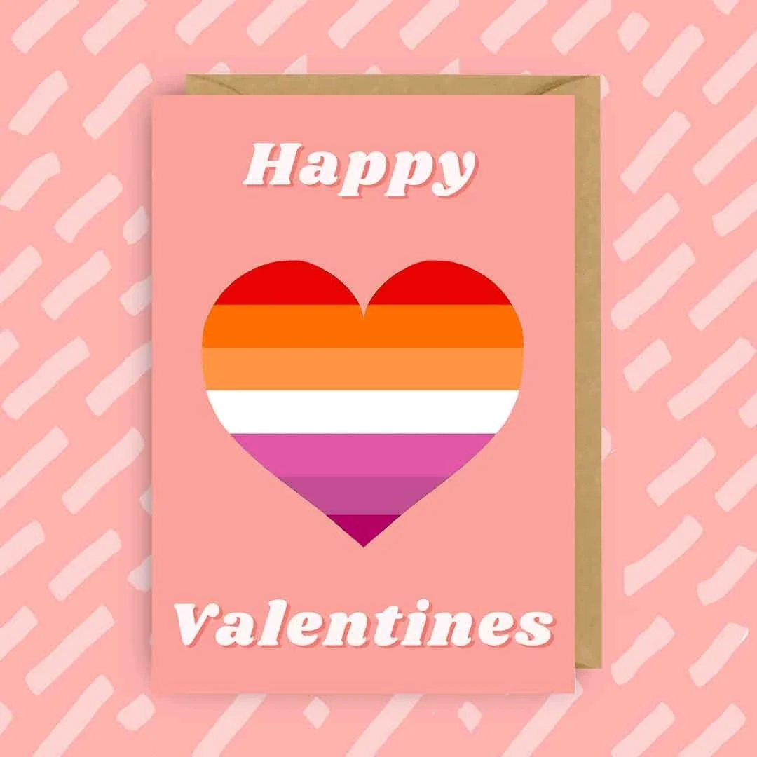 The Lesbian Pride Flag Valentines Card was created with love at home and professionally printed.