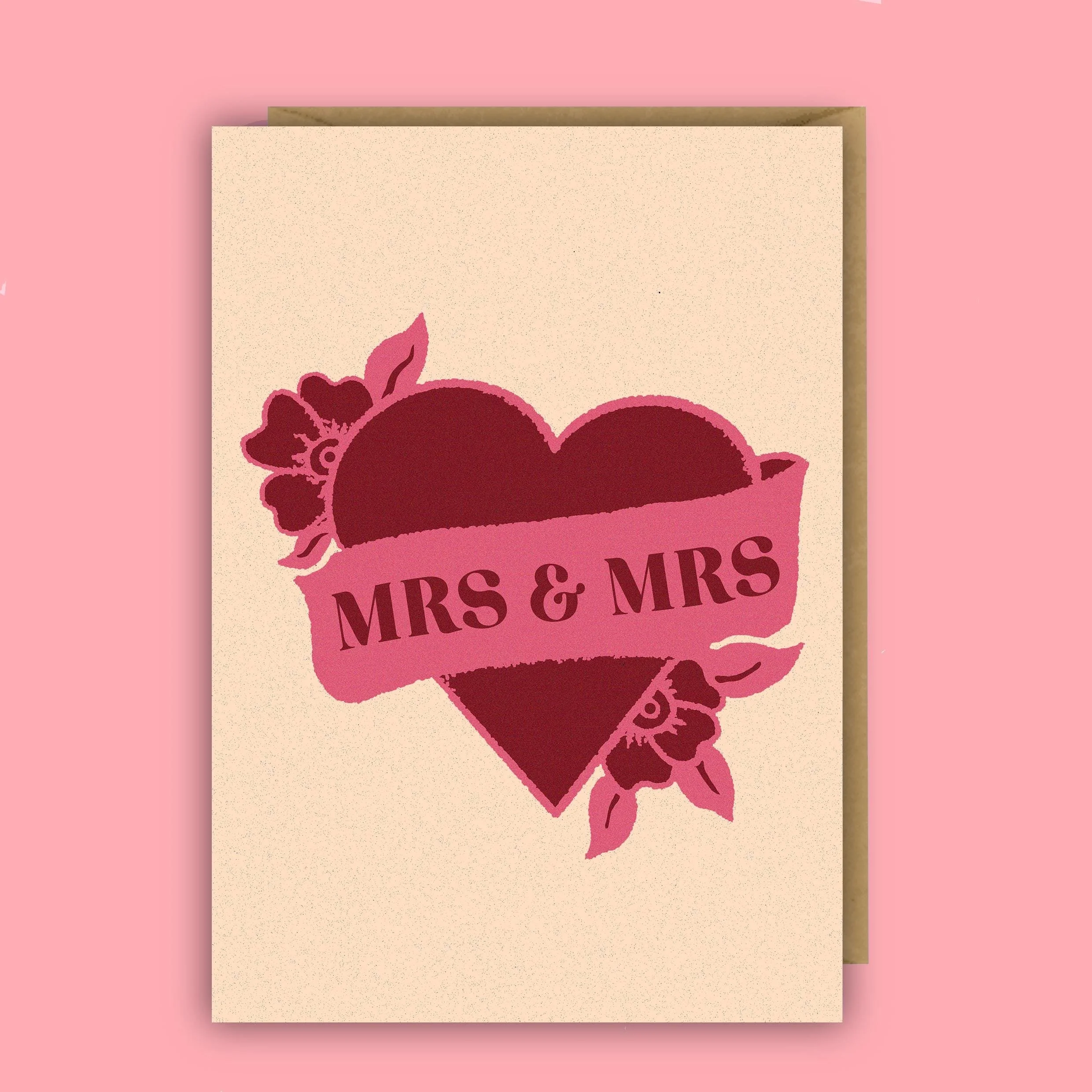 Lesbian Wedding Card: Mrs & Mrs Tattoo Design, LGBTQ+ Gift