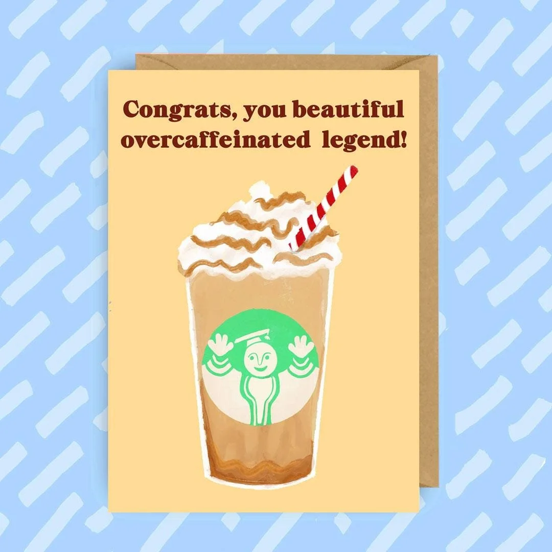 'Congrats, You Beautiful Overcaffeinated Legend! ' Graduation Card, created with love at home and professionally printed.