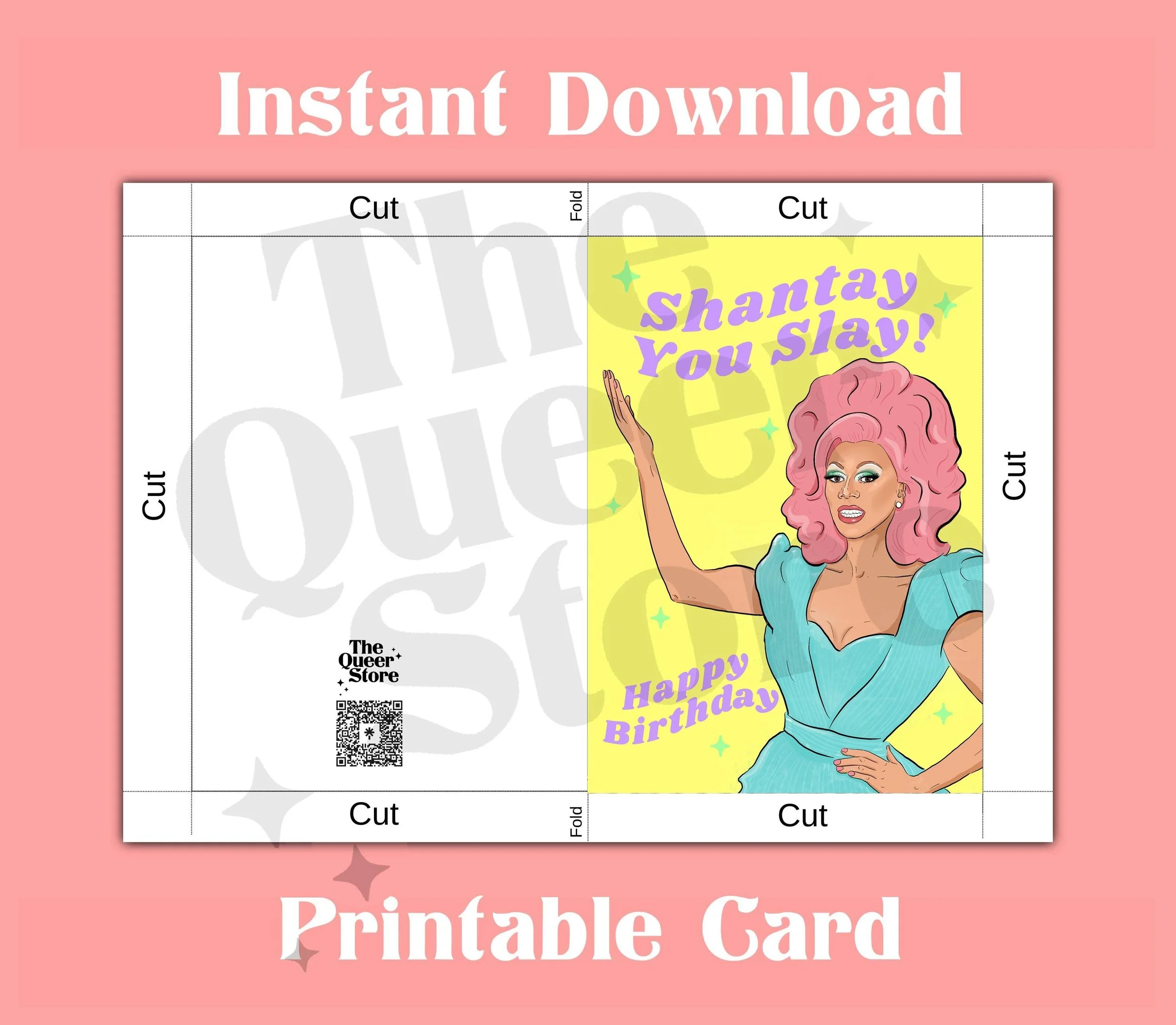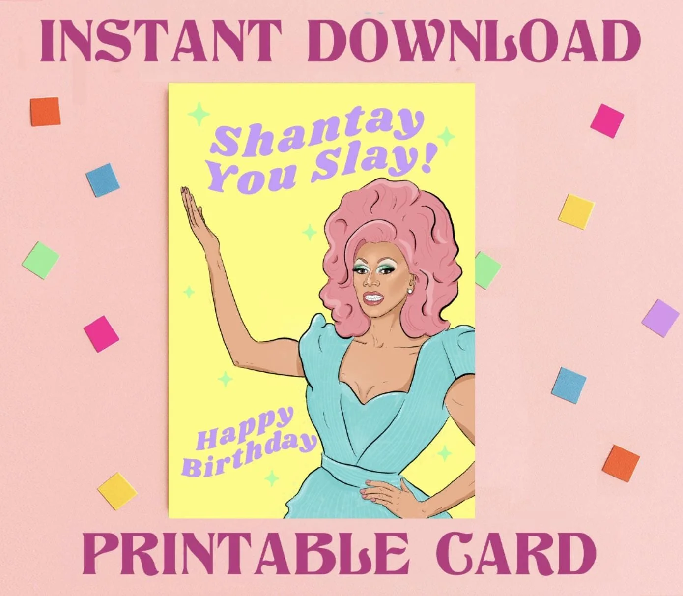 RuPaul Digital Card | Printable LGBTQ Greeting | Drag Queen Birthday Art | Printable Card | Instant Download | DIY